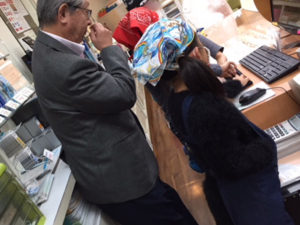 眼鏡の度数を試してもらうテストレンズを磨いてもらいました。