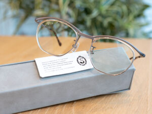 シークレットレメディは女性のデザイナーさんが手掛けているブランドで、メガネは“女性の眼差しをより魅力的に見せる額縁のようなもの”という考え方でデザインされておられます
