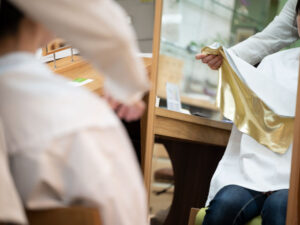 ドレープ(カラー布)をあててカラー診断です。