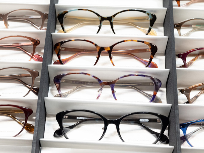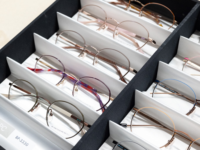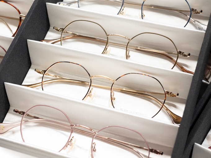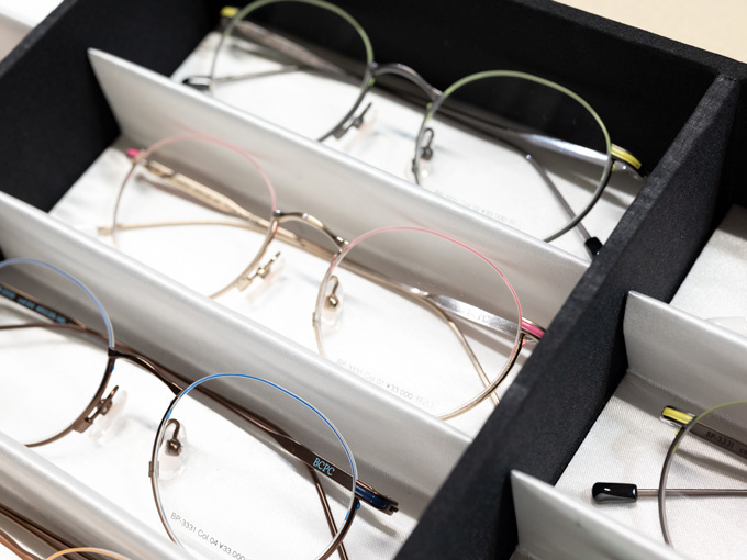 ナイロン糸のカラーがアクセントになったやや大きめの玉型モデルには、メイク効果もあるようです。