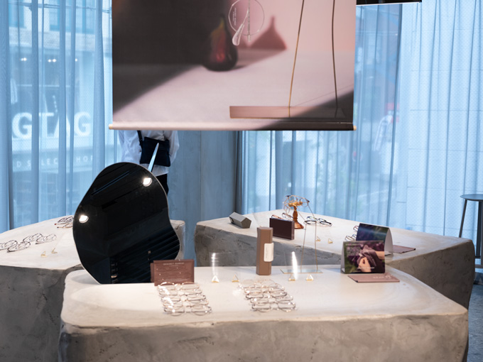 ところで、ちょっと余談なのですが、眼鏡ブランドの展示会の会場は、照明が薄暗い場所で開催されることが多く(雰囲気重視のため)、フレームのカラーが分かりにくくていつも苦労します(汗)