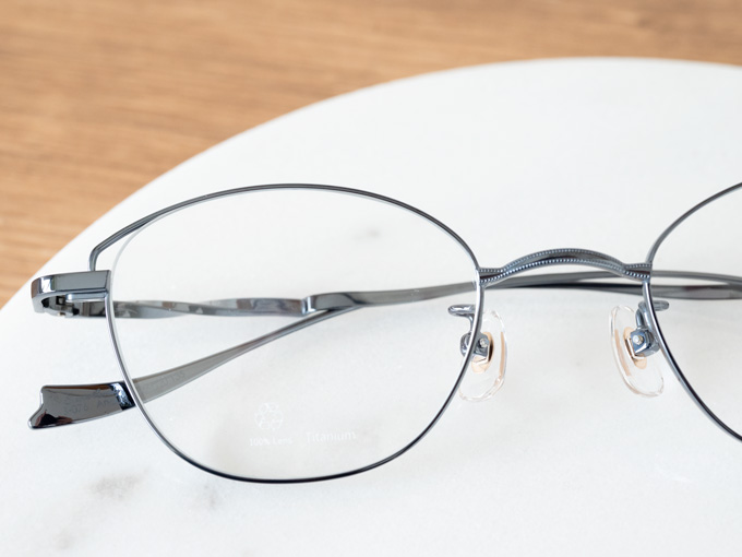 レディースフレームだと、ゴールドやブラウン、ピンクといったカラーが使われることが多いので、ネイビーはちょっと珍しいかもしれません。