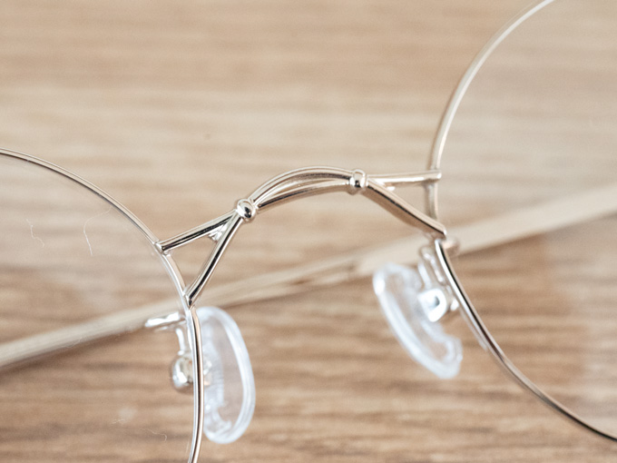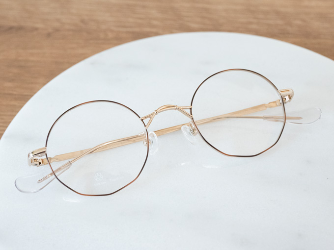 丸いのにカクカクした縦に長めのレンズシェイプで、これは中顔面短縮効果を狙っているそうです。