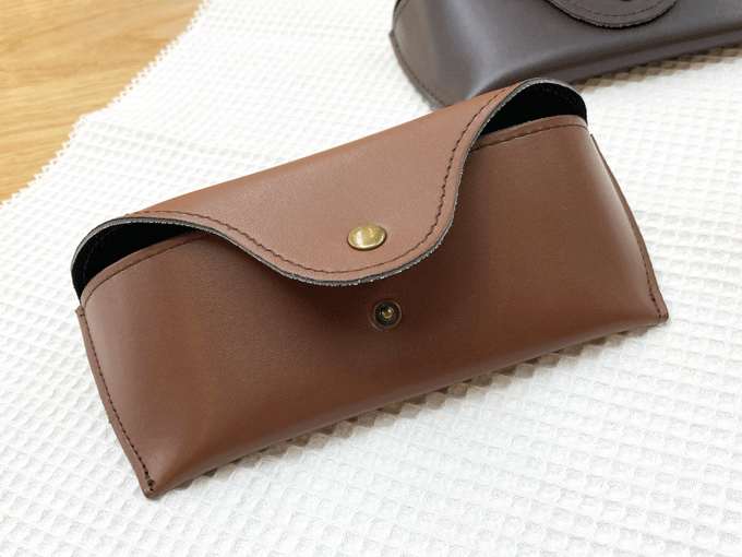 そんな中、先日の大阪での展示会でカラー渋めで大きめサイズのメガネケースを見つけたので注文いたしました。