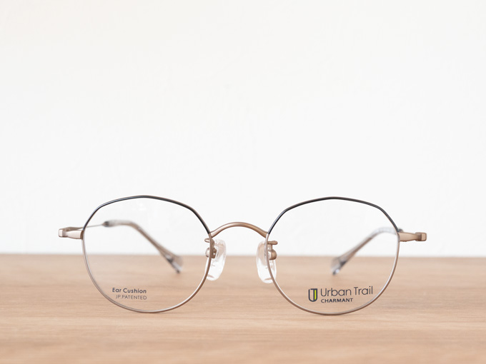 レンズの上下で形が全然違う不思議な玉型のモデルですが、担当営業さんによると、アーバントレイル シャルマンの中では結構人気のモデルだそうです。