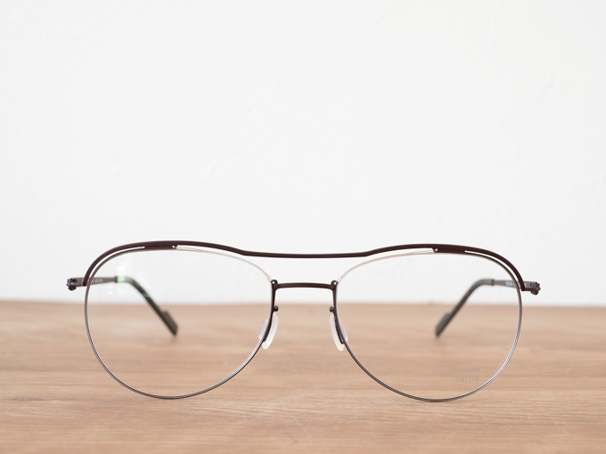 こちらはアンダーリムのフレームなのですが、メタルフレームのようにも見える面白いデザインです。
