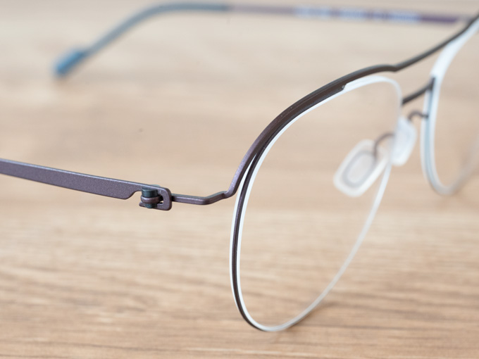テンプルにはネジを使わないブランドオリジナルのスクリューレスヒンジが使われております。