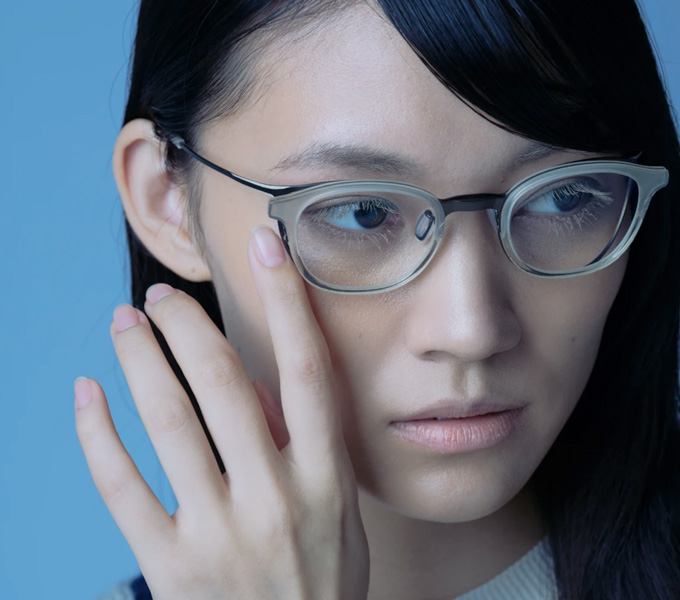 見る角度によってはちょっとカッコいい雰囲気に見えますが、玉型自体は丸みもあって柔らかい印象です。