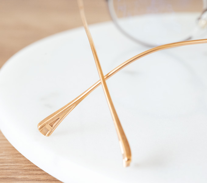 ピンクゴールドのテンプル(ウデ)は横顔を明るくトーンアップする効果もあります。