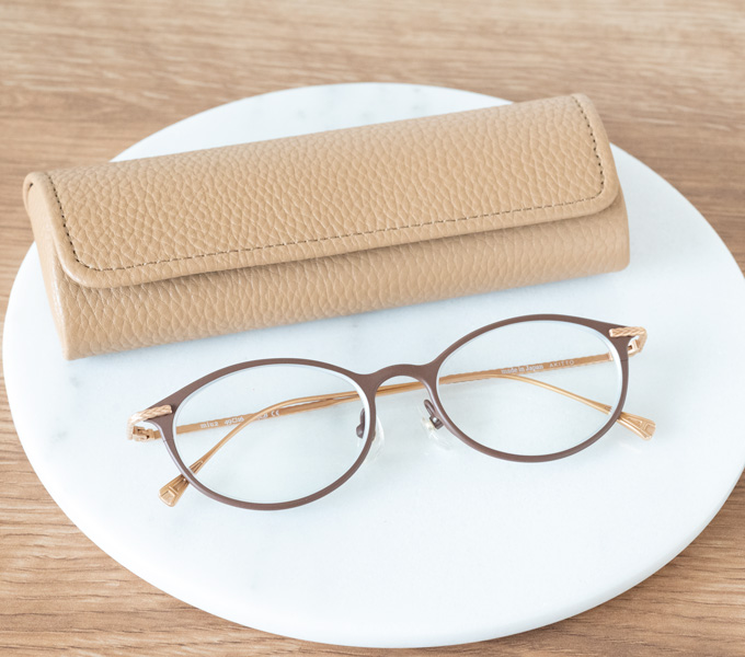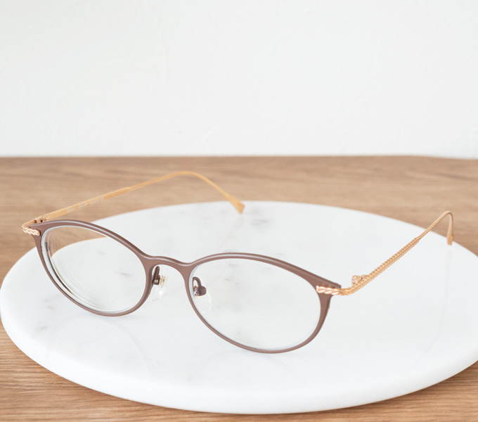 やさしくソフトな印象ですが、存在感のあるちょっと太めのリムがお顔にメリハリをつけてくれます。