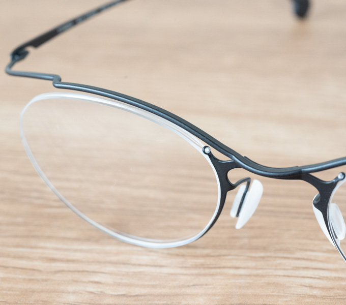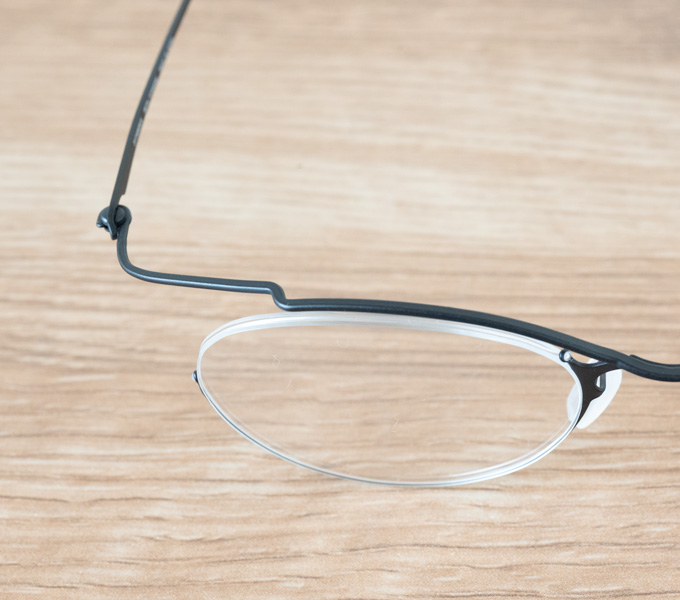 ナイロールフレームとなっており、レンズに溝掘ってナイロンの糸でフレームに固定します。