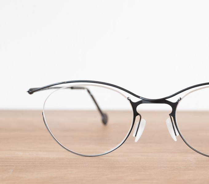 レンズがブロウパーツから独立した構造になっており、メガネの掛け外しの際にテンプルに力が加わっても、レンズには力が加わらないようになっています。