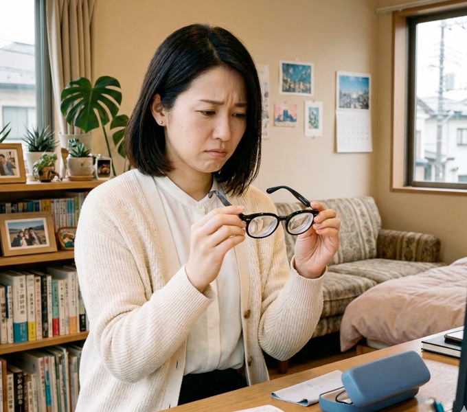 フレームとレンズの組み合わせによって、レンズをかなり薄く仕上げることはできるのですが、-10.00Dを超えるようなかなり強い近視度数の方の場合は、上記のような方法でメガネを作ったとしても、やはりどうしても厚みが出てしまいます。