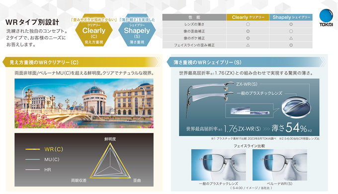 見え方重視の「クリアリー」、薄さ重視の「シェイプリー」という2つのタイプがあり、シェイプリーを選ぶと見え方は若干悪くはなるのですが、そのかわりにレンズがかなり薄くなります。