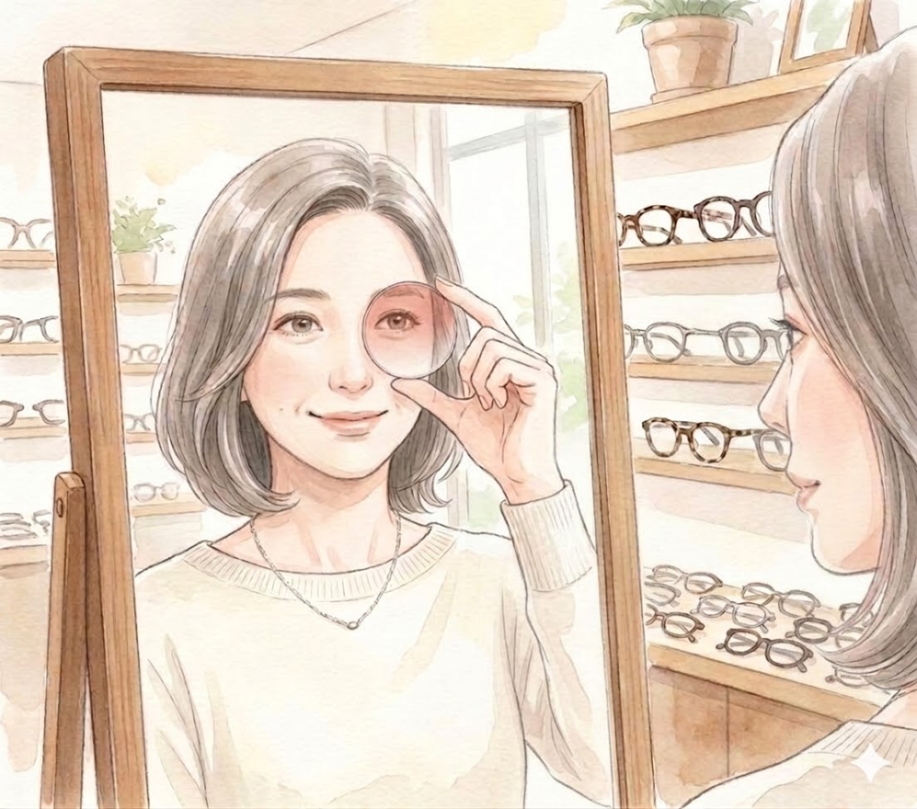 実際にサンプルレンズを顔に当ててみて、表情がパッと明るく見える一枚を一緒に探してみませんか?