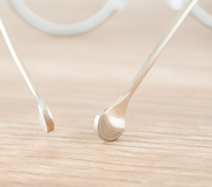 サイズ感(47□19)もお顔の幅にぴったりで、出来上がりのメガネをお渡しした時にお持ちのメガネと比べ、「ワンサイズ小さいだけでこんなにも印象が変わるの!?」と驚き、納得していただけたのも嬉しかったです。