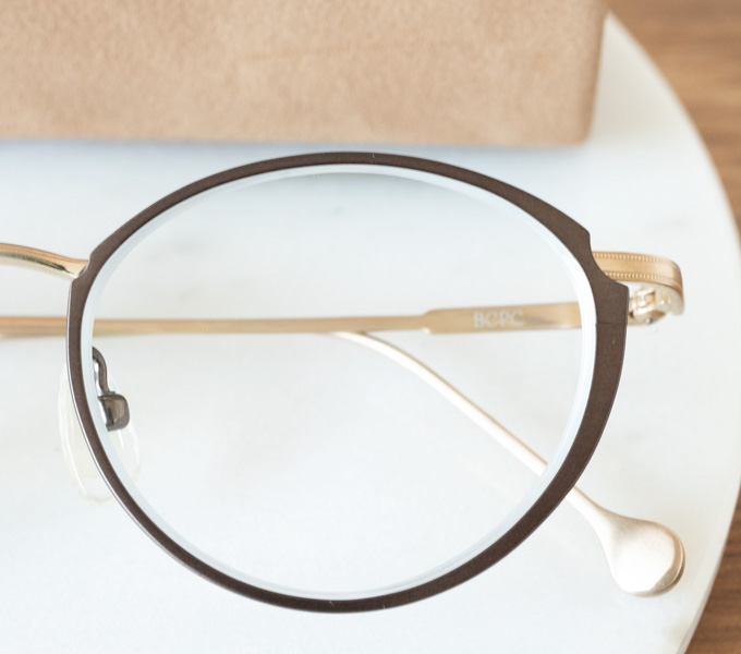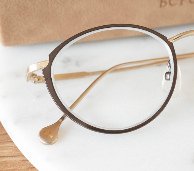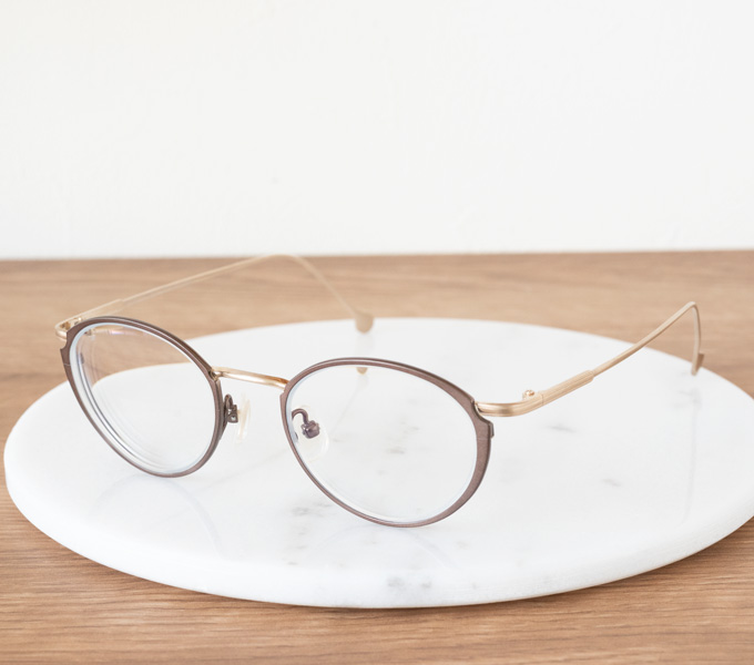 ブラウンとゴールドを組み合わせは上品な雰囲気があり、普段の生活でも使いやすい落ち着きのあるフレームです。