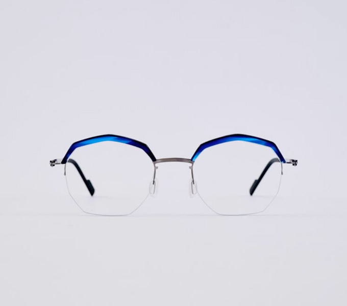 フロントにプラスチック素材を、テンプルにチタン素材を使ったコンビネーションモデルが中心となっております。