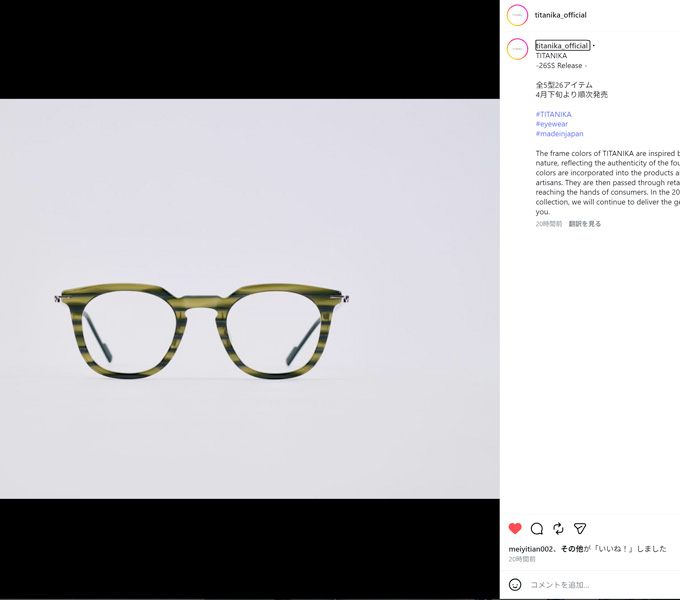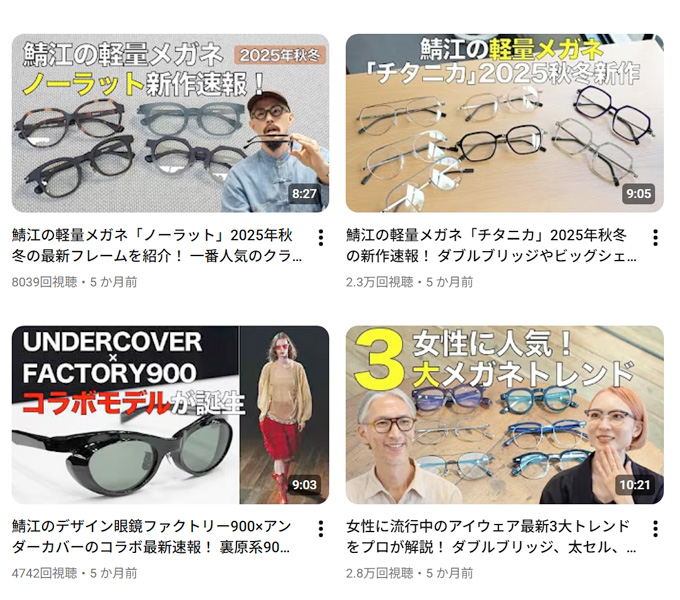 眼鏡ライターの藤井たかのさんのYouTubeチャンネル、『眼鏡流行通信』で昨年紹介された、チタニカの2025年秋冬モデルの動画は、再生回数が既に2万回を超えており、一般の眼鏡ユーザーさんの中にも興味をもっている方が増えているようです。