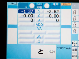 やろうと思えば0.12D刻みで度数を測定することが可能です。