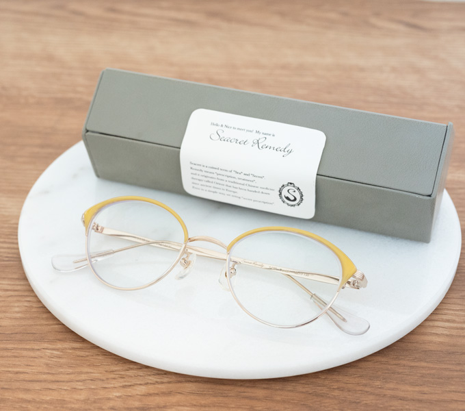 シークレットレメディ 軽くておしゃれ イエローのブロー付きフレーム