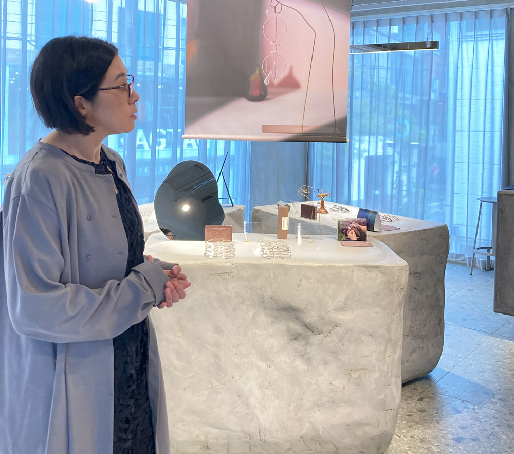 デザイナー兼ディレクターの小向真由美氏は、眼鏡の聖地・福井県で長年研鑽を積んだ、眼鏡を知り尽くしたスペシャリスト。デザインから工場との細かな調整、プロモーションに至るまで、すべてを自身の手で手掛けています。