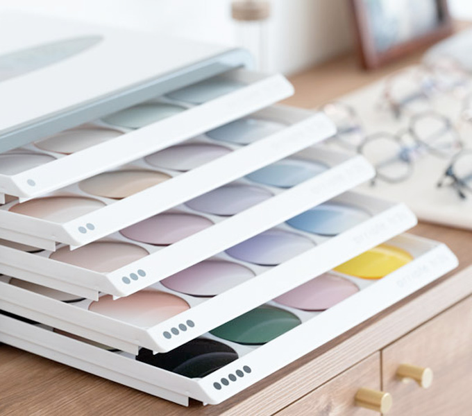当店では色彩学を取り入れて開発されたカラーレンズも取り扱っており、お客様のお悩みに合わせたカラーレンズをアドバイスさせていただいております。